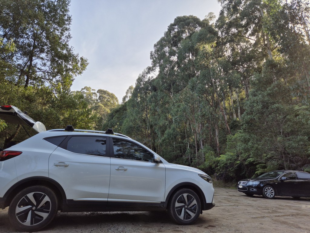 We left home with 100% charge in the MG ZS EV and headed east, spending the first 30 minutes cruising along the Eastern Freeway before veering off onto State Route 36. From there, the road cuts through the town of Boronia before arriving at The Basin — a charming country town that feels like a gateway to the forested hills of the Dandenongs.