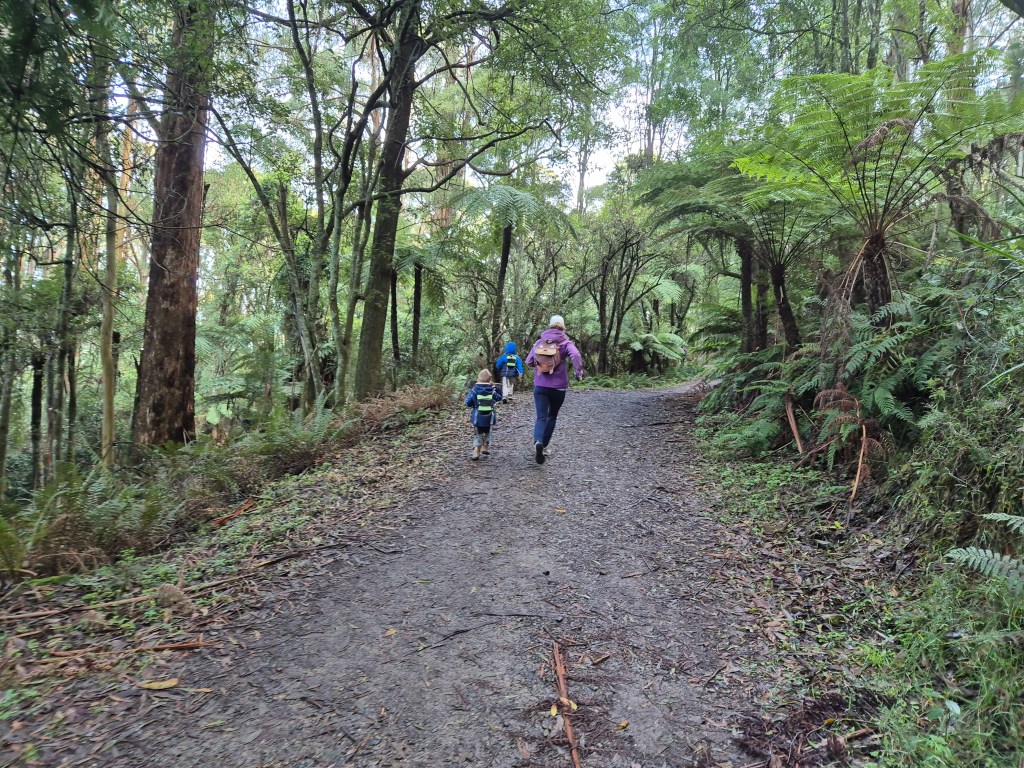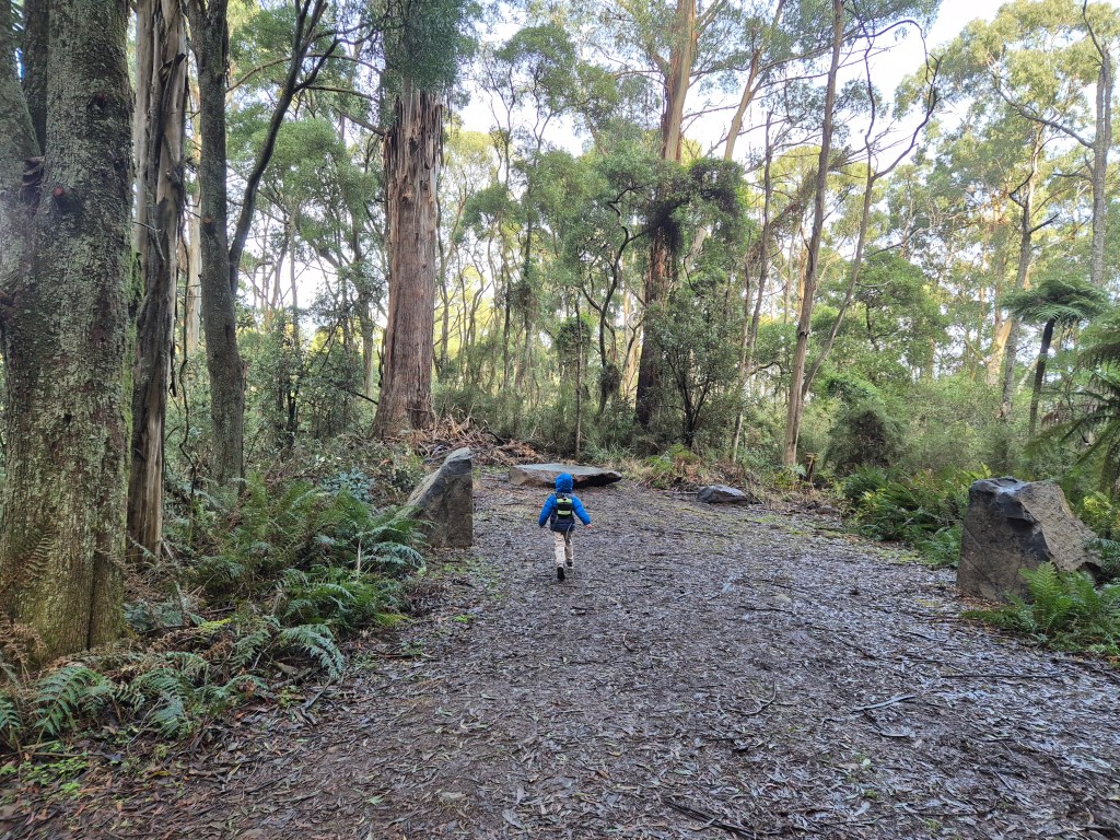 Eventually, we reached the junction where the Channel 10 Track meets the Zig Zag Track, which continues upward to the summit of Mount Dandenong. A goal for another day — when little legs are ready for the extra climb